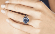 Perhaps the world’s most famous “vintage” ring is Katherine, Duchess of Cambridge’s ring, given to her by HRH Prince William and first worn by his mother, Princess Diana. This ring features a large blue Ceylon sapphire surrounded by 14 solitaire diamonds and was designed by Garrard’s. Halo settings (a large stone surrounded by a “halo” of smaller stones) such as the Duchess of Cambridge’s, are another trend that combines vintage style with up to the minute details.
