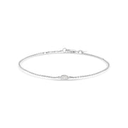 This Fairfax & Roberts workshop crafted bracelet bracelet features a delicate chain with a single, oval-cut diamond. A special gift for a loved one, this piece has been designed to be worn every day and styled to suit your personality.