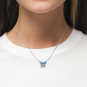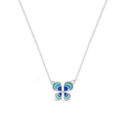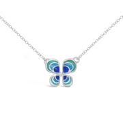 The Butterfly Necklace is crafted from sterling silver and features a butterfly motif with ombre blue enamel inlay. All proceeds from the Butterfly Necklace will be donated to the Butterfly Foundation supporting the important work they do.