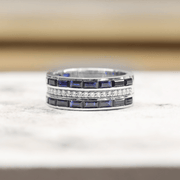 Choosing the right wedding band comes down to personal taste and style. Our collection of men’s wedding rings features a range of designs from plain to checkered, stone set and inscribed.