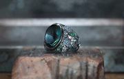 | Gemstone | 7.39ct cabochon grey moonstone 1.11cts round brilliant cut black diamonds 0.16ct round brilliant cut white diamonds |