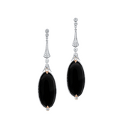 A pair of pendant style earrings featuring black jade gemstones framed in an 18ct white and rose gold complete with diamond accents.