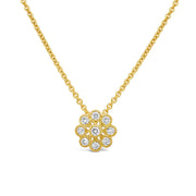 Crafted by Fairfax & Roberts in-house artisans, this Deco Daisy Medium Diamond Pendant & Chain features a floral motif encrusted with hand-set diamonds to add an element of luxury to a simple and wearable piece.