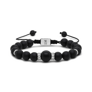 A modern style bracelet featuring onyx and diamond set beads. Clasp is crafted in 18ct white gold.
