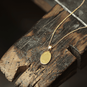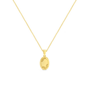 A petite oval shaped signet pendant with vine engraved detail. Add a personalised touch to this timeless design by engraving a loved one's initials or special symbol on the oval face.