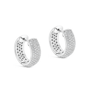 A pair of hinged wide hoop earrings featuring five rows of bead set round brilliant cut diamonds. Crafted in 18ct white gold.