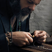 Discover the world of Shamballa, which features the Star of Shamballa considered the ultimate tool in harnessing the powerful energy of lightning. This exquisite example features masculine brown sapphires and green marble, a perfect accompaniment to a stylish watch or a stack of bracelets.