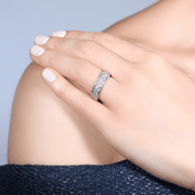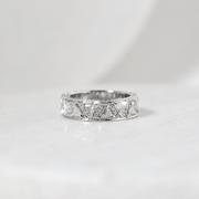 A striking diamond set band featuring an array of trilliant cut and pavé set round brilliant cut diamonds. Crafted in 18ct white gold.